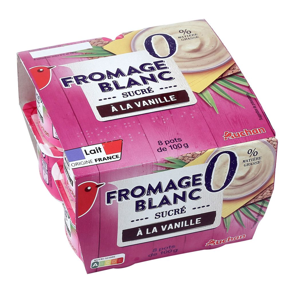 Lait écrémé pasteurisé, sucre 8%, eau, amidon modifié de manioc, arôme naturel de vanille, gousse de vanille épuisée broyée, concentré de carthame; épaississant : gomme xanthane ; correcteur d'acidité : acide citrique, citrate de sodium ; ferments lactiques.Elaboré à partir de lait origine France.