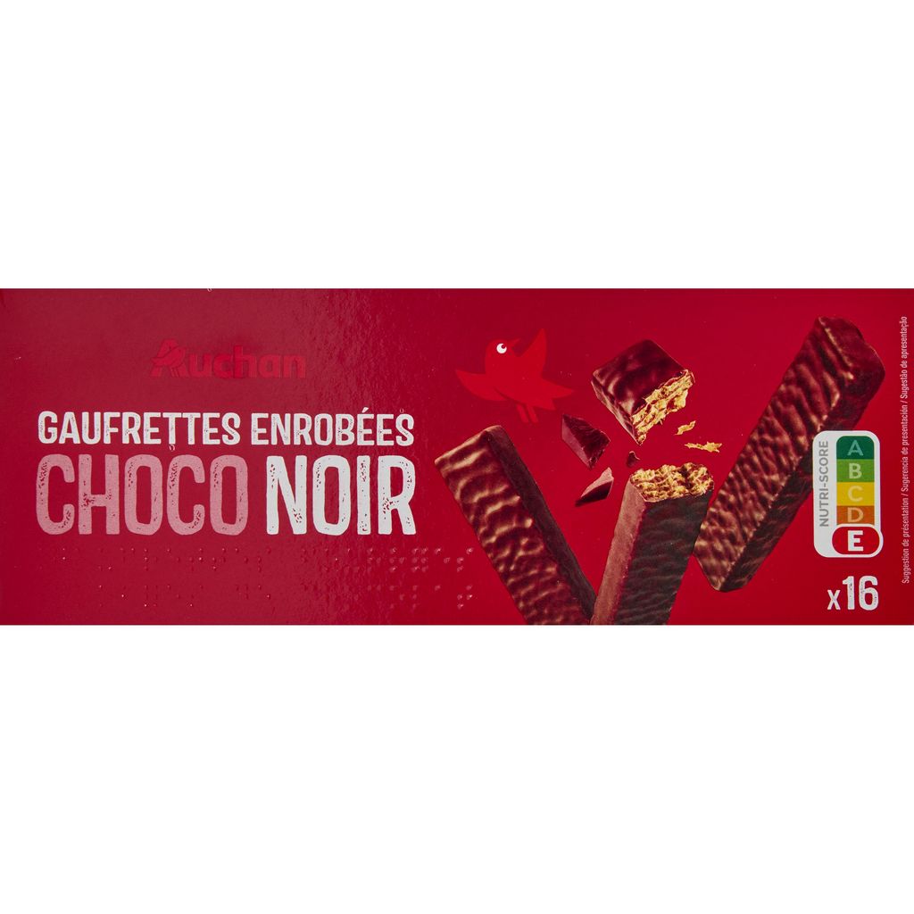 Craquez pour les Gaufrettes Enrobées Chocolat AUCHAN (150g) : une gaufrette croustillante enrobée d'un délicieux chocolat fondant, idéale pour une pause gourmande à tout moment. Retrouvez ce plaisir accessible et de qualité dans votre magasin AUCHAN préféré !
