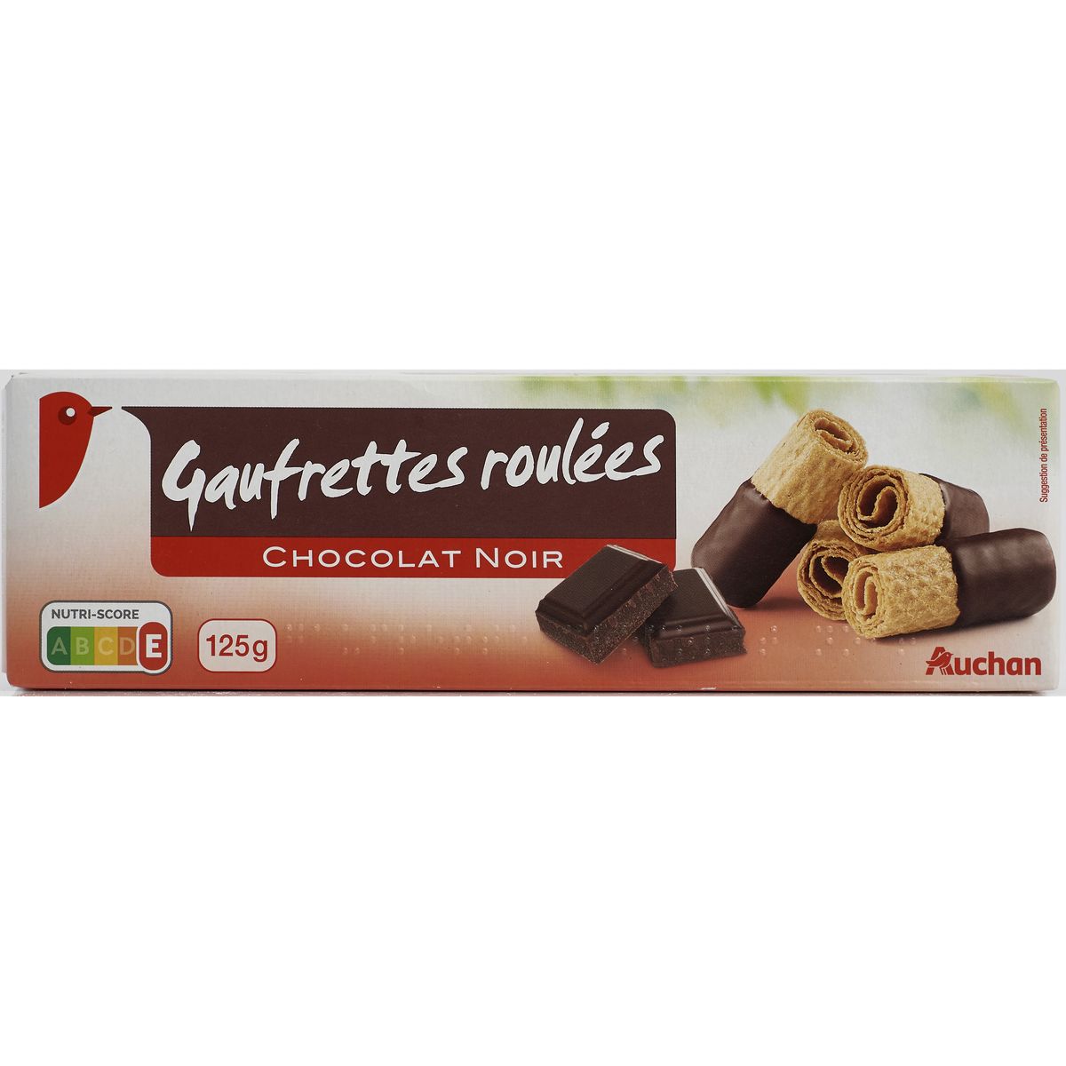 Des gaufrettes roulées à la chaleur du four et plongées dans du chocolat noir fondant.