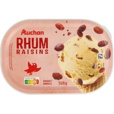 Glace au rhum 93,4% avec une préparation de raisins au rhum 6,6%, surgelée