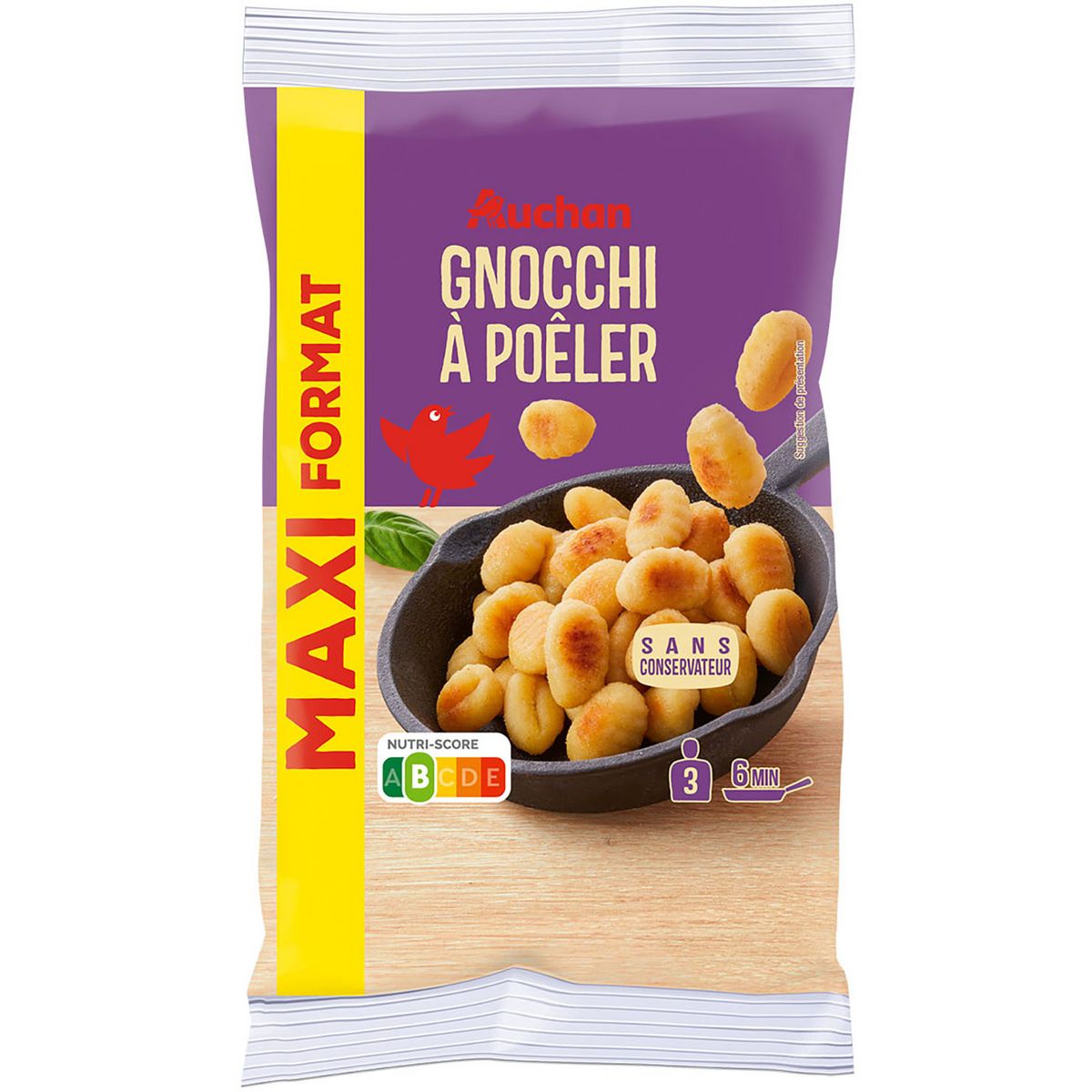 à la poêle:Faire revenir les gnocchi dans une poêle anti-adhésive avec une noix de beurre. Saisir les gnocchi pendant 2 minutes. Couvrir, laisser cuire et dorer à feu moyen pendant 4 minutes en les remuant de temps en temps. Servir rapidement les gnocchi afin de garder tout leur croustillant.