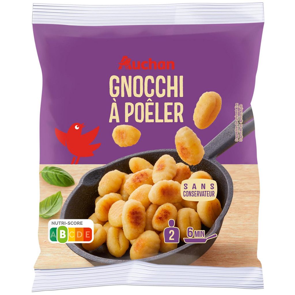 à la poêle:Faire revenir les gnocchi dans une poêle anti-adhésive avec une noix de beurre. Saisir les gnocchi pendant 2 minutes. Couvrir, laisser cuire et dorer à feu moyen pendant 4 minutes en les remuant de temps en temps. Servir rapidement les gnocchi afin de garder tout leur croustillant.