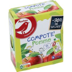 Compote Pomme Nature Allégée en sucres (30% de sucres en moins par rapport à une compote traditionnelle)