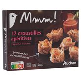 au four - sans décongélation préalable. Préchauffer le four à 210°C. Sortir le plateau de l'étui carton et retirer le film plastique. Enlever les croustilles de leur plateau et déposer les produits sur une plaque recouverte de papier sulfurisé. . Four traditionnel: 210°C pendant 11 minutes Four à chaleur tournante: 210°C pendant 9 minutes