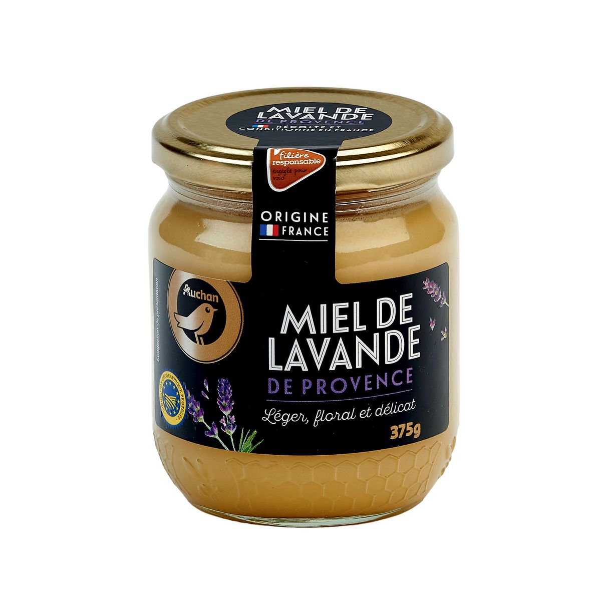 Miel de Lavande de Provence Auchan Gourmet origine 100% France.