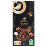 Tablette de chocolat au lait façon rocher Auchan Gourmet, fabriquée en France.