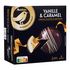Eau, crème 14% (lait origine France), sucre, lactose (lait) et protéines de lait (origine UE), sirop de sucre inverti, œufentier liquide, caramel 2% (sucre, eau, sirop de glucose-fructose), caramel au beurresalé 2% (sirop de glucose-fructose, sucre, crème (lait origine UE), lait concentré sucré (lait concentré (origine UE), sucre), beurre (lait origine UE),eau, beurre salé (beurre (lait origine UE), sel), sel), copeaux de chocolat noir 1% (sucre, pâtede cacao, beurre de cacao, émulsifiant : lécithines de tournesol), chocolat noir 1% (pâte de cacao, sucre,émulsifiant : lécithines de soja, arôme naturel de vanille), cacao maigre en poudre, sirop de glucose, farine de blé, beurre pâtissier (lait origine UE ou hors UE), caramel au beurre etau sel (sirop de glucose, sucre, beurre (lait origine UE), eau, crème (lait origine UE), sel), lait écrémé enpoudre (origine France), huile de tournesol, jaune d'œuf liquide, chocolat au lait (sucre,beurre de cacao, lait entier en poudre (origine UE ou hors UE), pâte de cacao, émulsifiant : lécithinesde soja, arôme naturel de vanille), chocolat blanc (sucre, beurre de cacao, laitentier en poudre (origine UE), émulsifiant : lécithines de soja, arôme naturel de vanille), émulsifiant: mono- et diglycérides d'acides gras, colorant : caramel ordinaire ; épaississants: farine de graines de caroube, gomme guar ; gélifiants : pectines, carraghénanes ;correcteurs d'acidité : carbonates de sodium, carbonates de potassium, acidecitrique ; arôme naturel de vanille, gousse de vanille épuisée broyée, stabilisant :pectines.Traces éventuelles de fruits à coque et de graines de sésame.