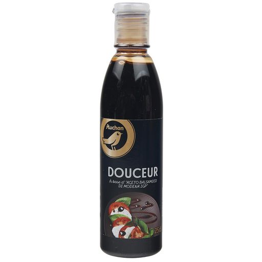 Ingrédients : Moût de raisin cuit (contient SULFITES), Aceto balsamico di Modena IGP 35% ( vinaigre de vin (contient SULFITES), moût de raisin cuit (contient SULFITES)), amidon modifié de mais.