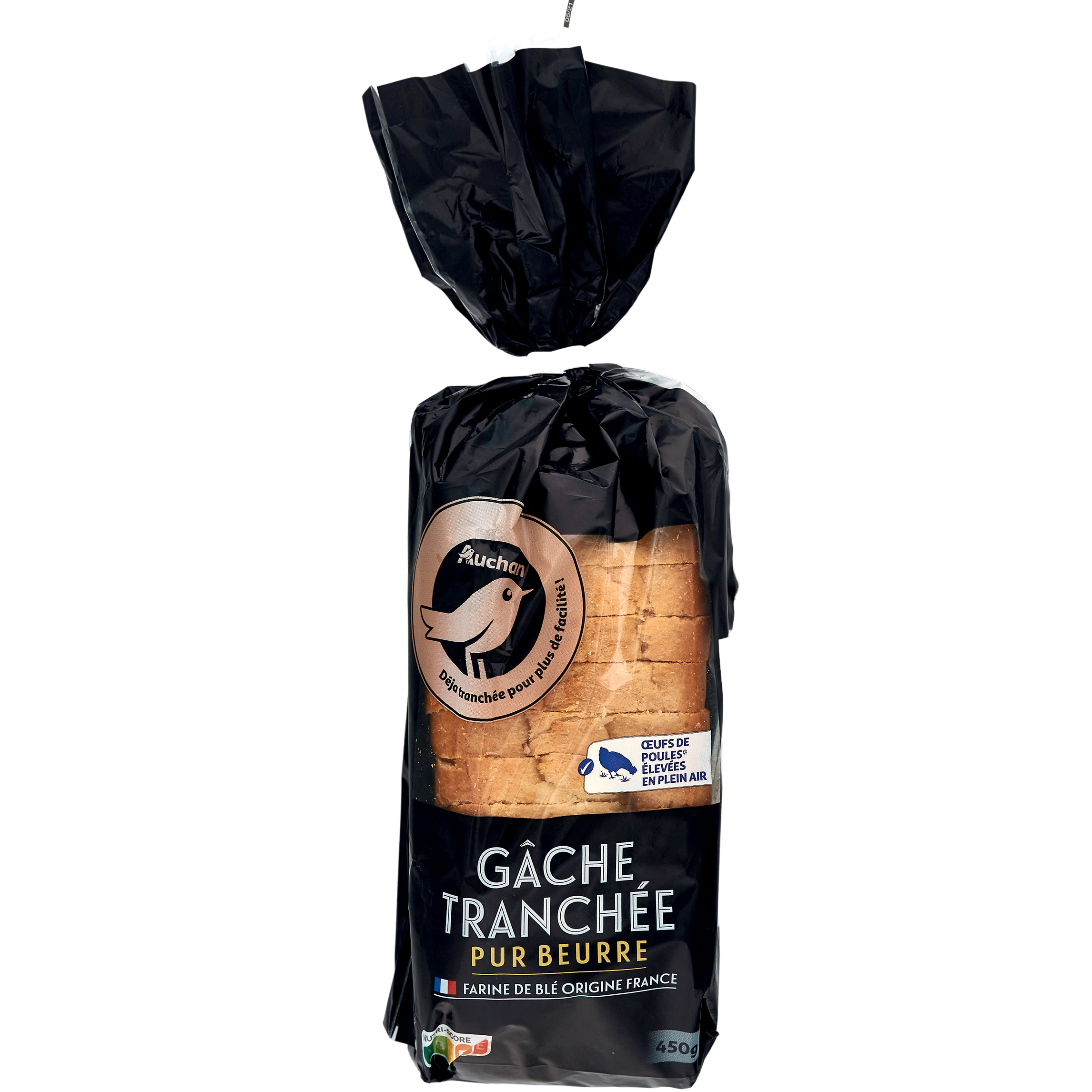 Gâche tranchée pur beurre 450g, aux oeufs de poules élevées au sol et à la farine de blé origine France