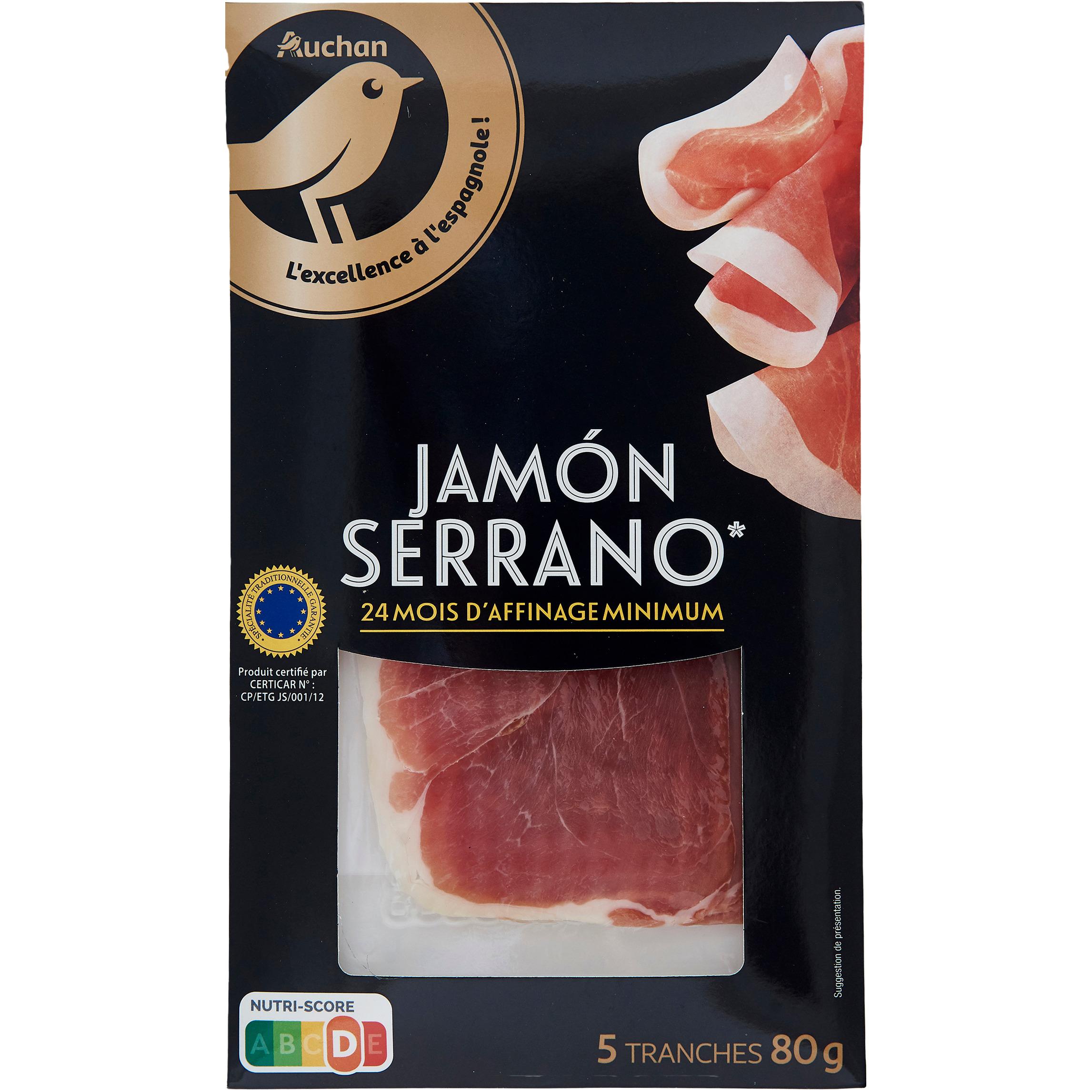 Au terme de 24 mois d'affinage minimum, qui lui permettent de révéler ses arômes, ce jambon Serrano STG élaboré en Espagne est découpé en grandes tranches, pour vous permettre de réaliser de belles assiettes au meilleur rapport qualité / prix.
