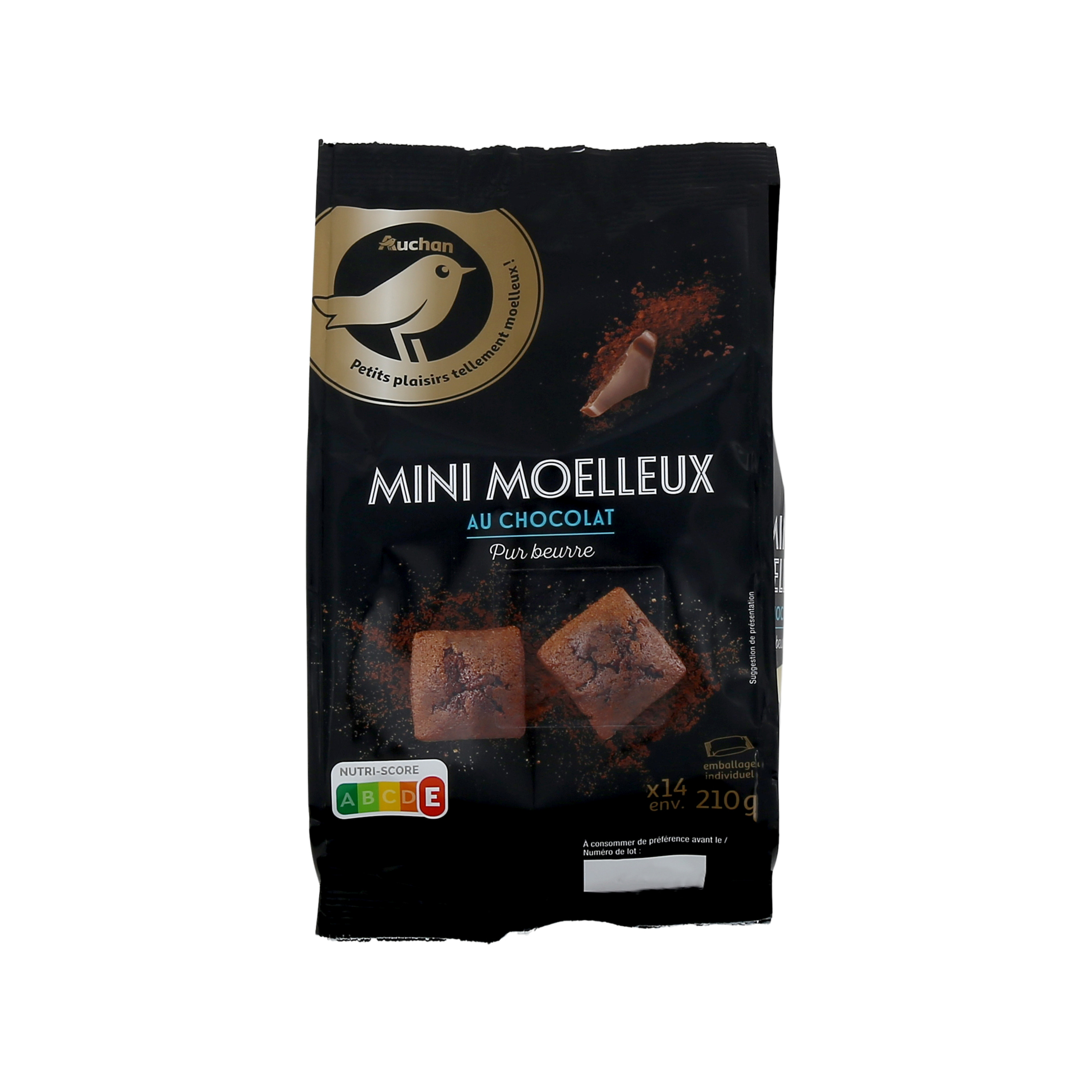 Mignardises pour cafés gourmands. Petits plaisirs tellement moelleux : mini moelleux au chocolat pur beurre en sachets individuels
