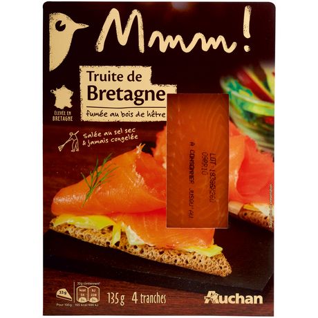 Truite arc-en-ciel fumée au bois de hêtre, élevée en eau douce en France en Bretagne Garantie jamais congelée Garantie jamais congelée