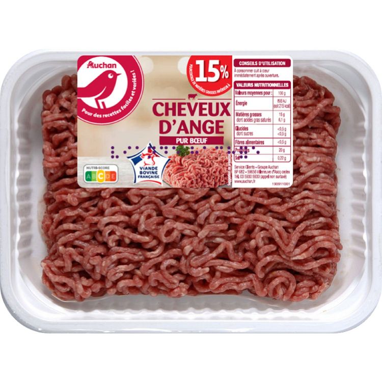 AUCHAN Haché vrac Pur Bœuf 15%mg 700g
