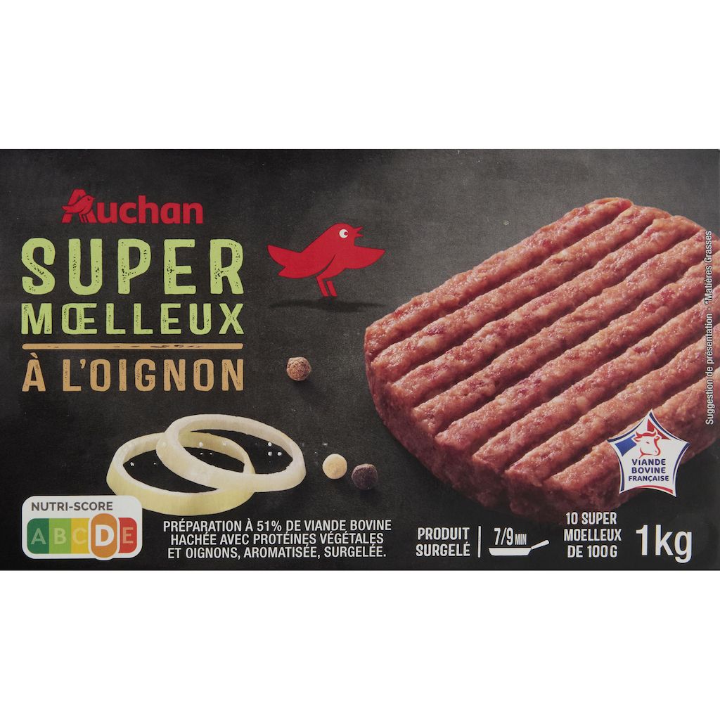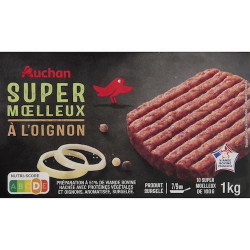On vous en donne plus : Le super moelleux est élaboré à partir de viande de bœuf d'origine française à laquelle nous avons ajouté de la protéine végétale pour garantir un haché surgelé très moelleux, même bien cuit