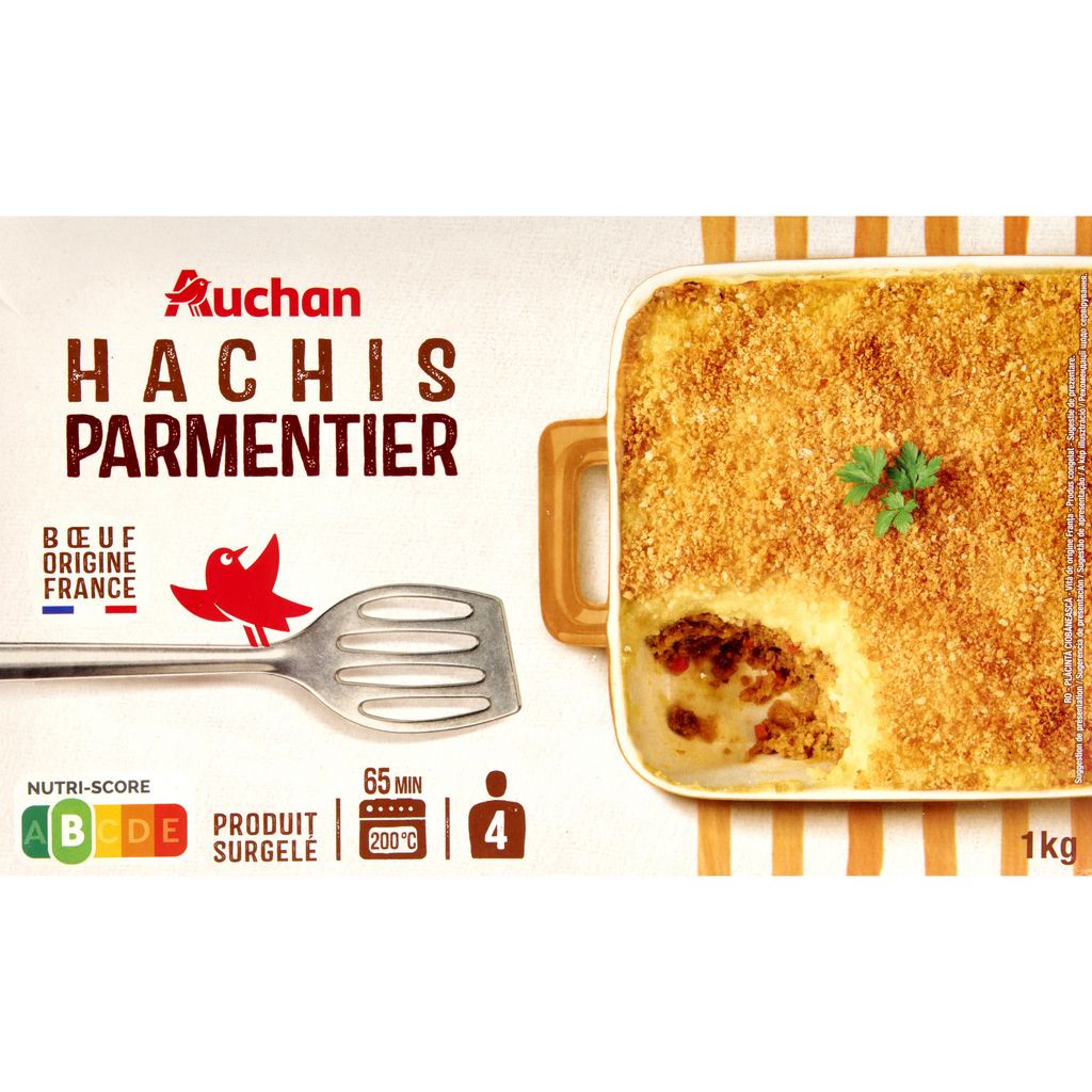 Ingrédients : Eau, viande bovine VBF (origine France) 20%, flocons pomme de terre déshydratés 6,7%, oignon, crème (LAIT), carotte, double concentré de tomate, amidon de maïs, purée de CÉLERI, tomate, oignon déshydraté, LAIT écrémé en poudre, chapelure (BLÉ), emmental (LAIT), sel, persil 0,3%, ail, huile de colza, paprika, thym, laurier, curcuma, muscade, poivre, romarin. Traces éventuelles de mollusque, œuf, poisson, crustacé, moutarde, graines de sésame, soja, fruits à coque et autres céréales contenant du gluten.
