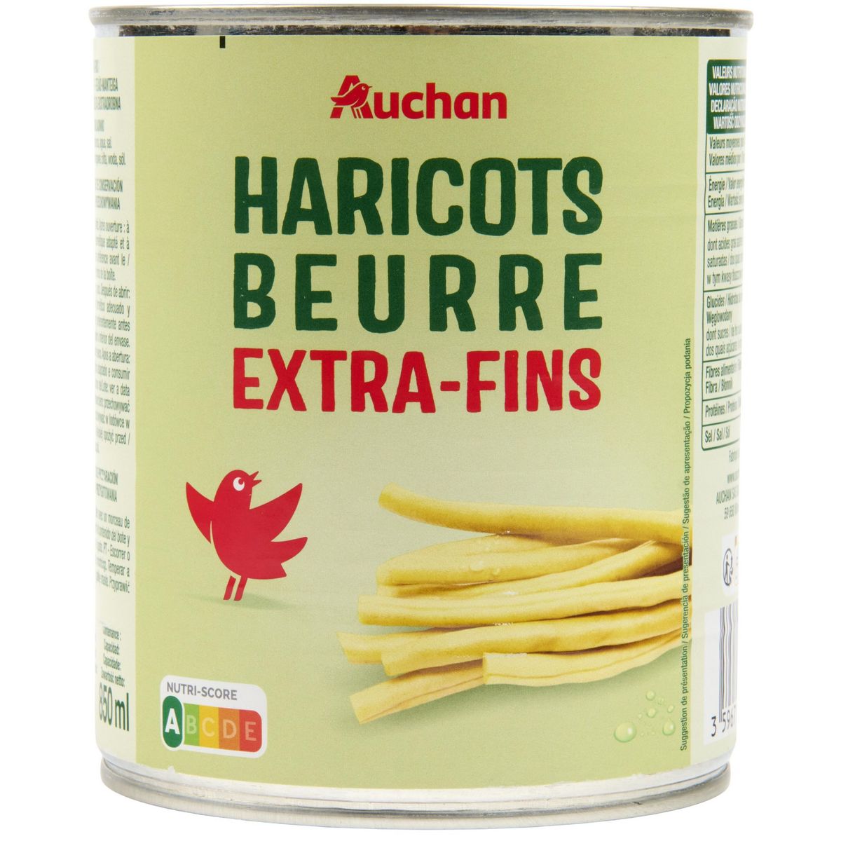 Ingrédients : Haricots beurre extra-fins, eau, sel, acidifiant: acide citrique.