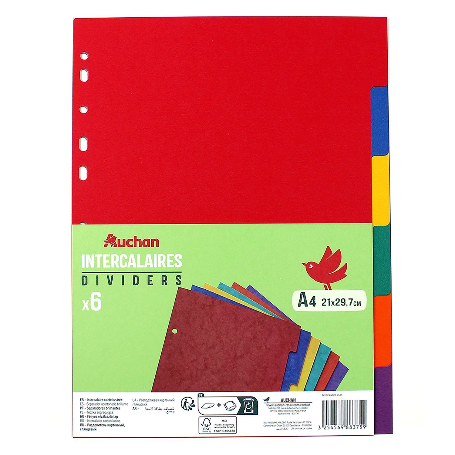 intercalaires neutres avec carte forte - 6 positions - 160 g - A4