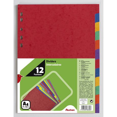 12 intercalaires Auchan A4 21 x 29,7 cm