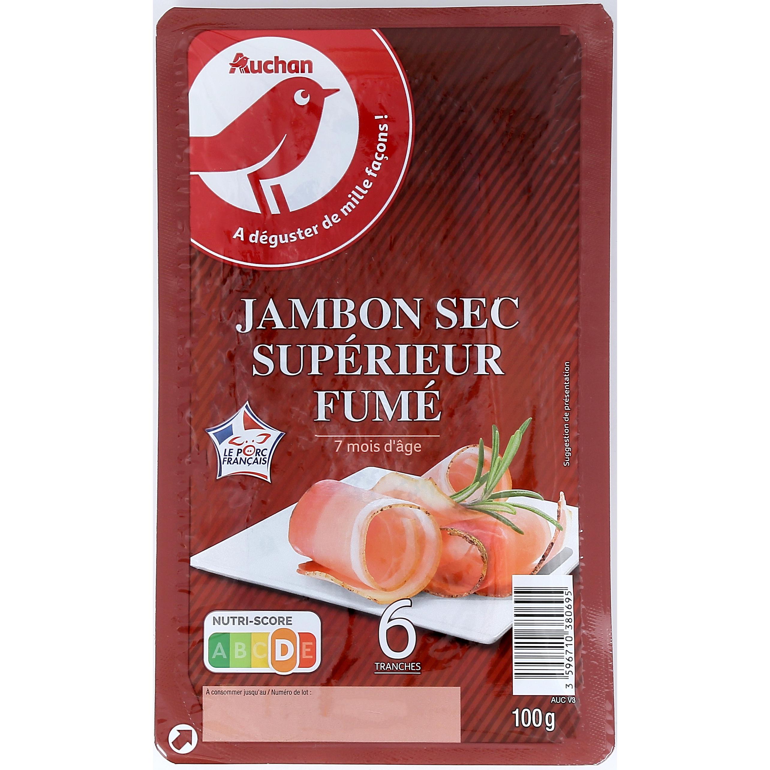 Ce jambon Sec , affiné 7 mois minimum, fumé au bois de hêtre, est tranché au meilleur de sa saveur pour offrir à votre table finesse et raffinement au quotidien. Viande de Porc FRANCAIS