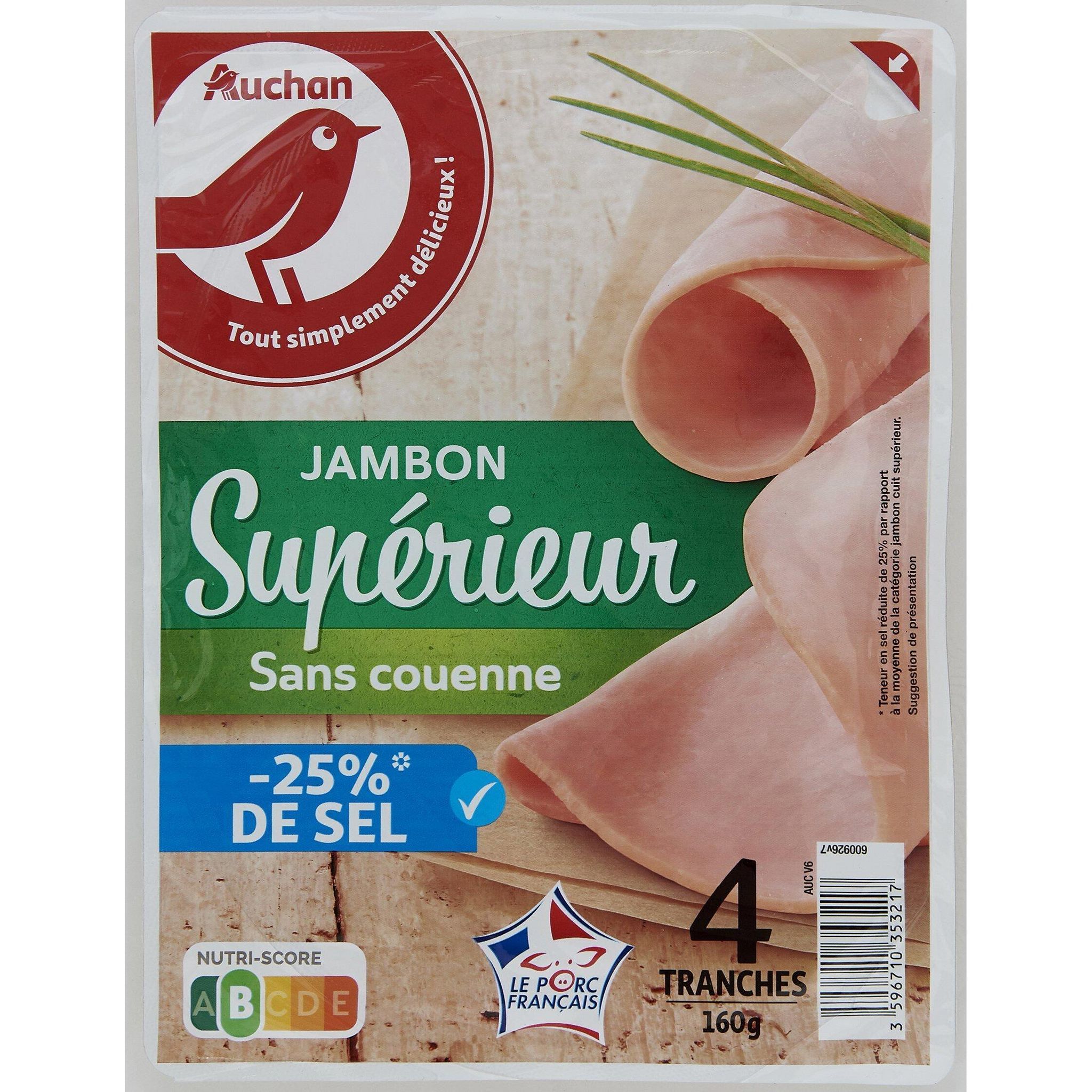 AUCHAN Jambon supérieur réduit en sel 4 tranches 160g