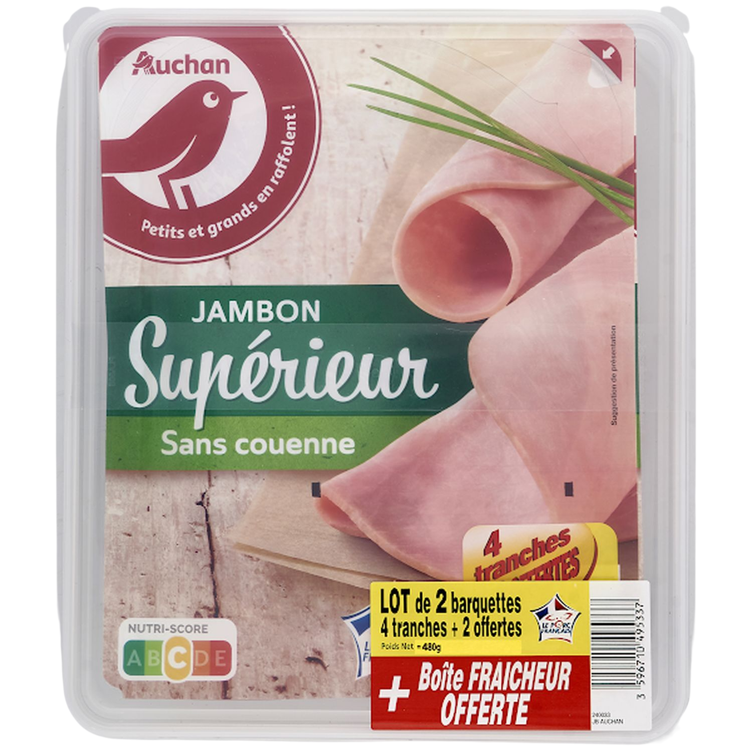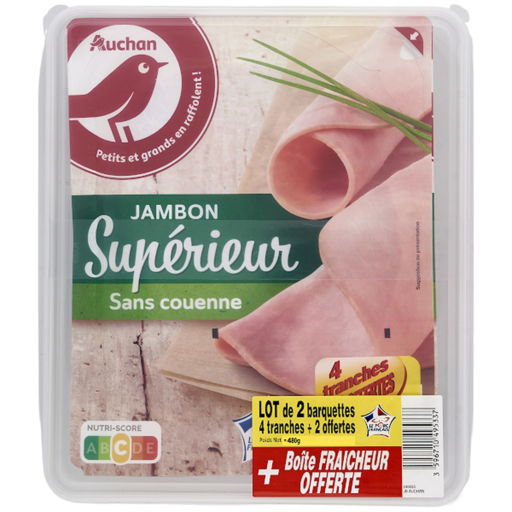 Bonjour, Nous vous remercions d'avoir partagé votre avis concernant notre AUCHAN Jambon supérieur sans couenne avec boîte fraîcheur. Nous sommes ravis d'apprendre que vous appréciez nos boîtes fraîcheur en plastique et que vous trouvez la qualité du jambon correcte. Nous prenons note de votre remarque concernant la fermeture des boîtes et nous en tiendrons compte pour d'éventuelles améliorations. Nous espérons que vous continuerez à nous faire confiance et à apprécier nos produits. Bien cordialement.