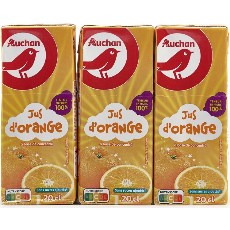 Bon jus d'orange même si il est moins goûteux que je pur jus d'orange avec pulpe Auchan