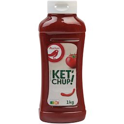 Ingrédients : Purée de tomates 50% (origine Espagne et/ou Italie) (soit 140g de tomates pour 100gde produit fini), eau, sucre, vinaigre d'alcool, sel, arôme natureld'épices. Traces éventuelles de céleri et de lait.