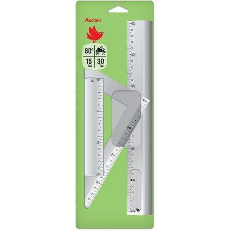 Accessoire indispensable pour permettre aux élèves de réaliser avec précision des figures géométriques ou des dessins, ce set de 3 articles de traçage comprend une règle de 15 cm, une règle de 30 cm et une équerre de 20 cm (60°) pour tracer ou vérifier des angles droits. Réalisées en aluminium rigid
