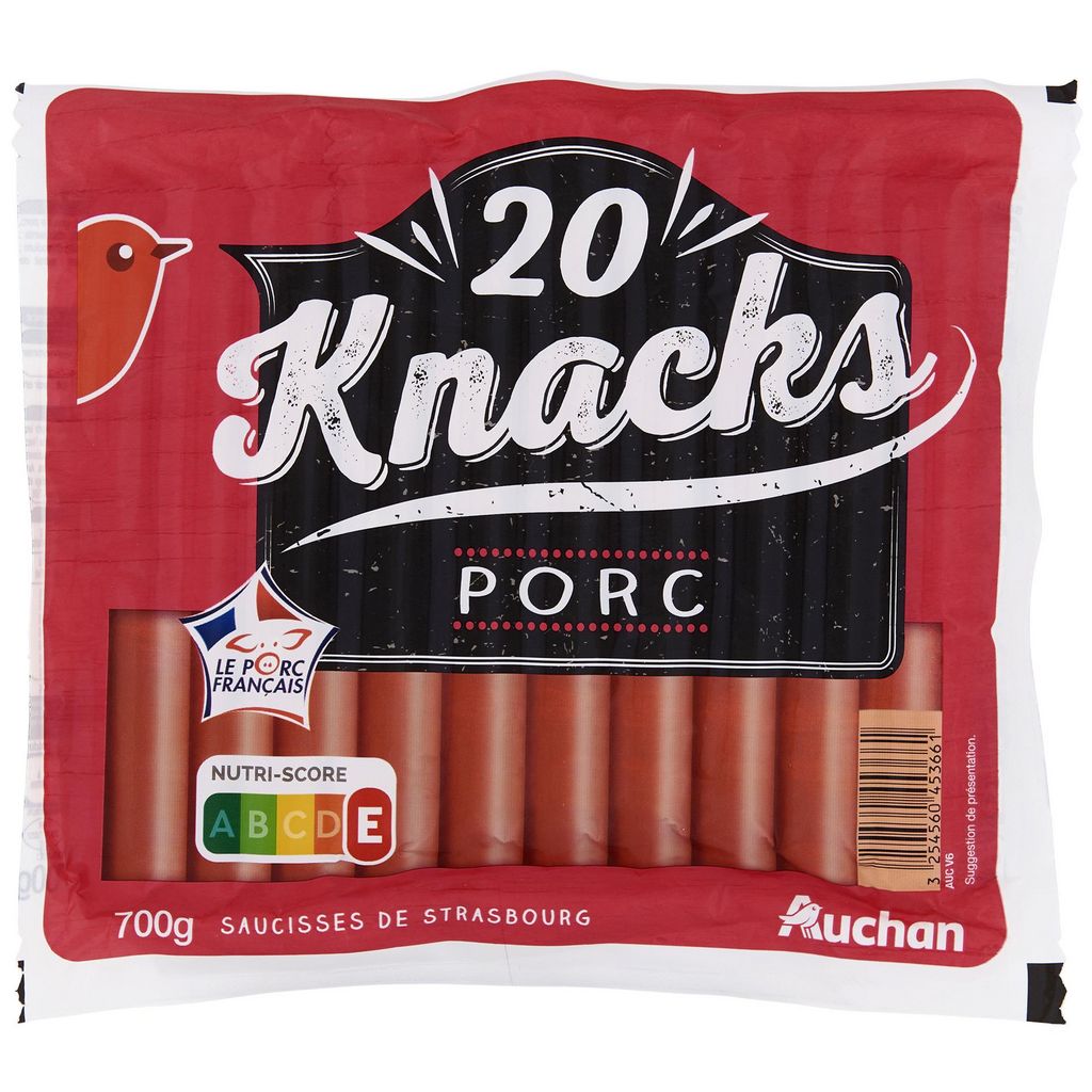 Knacks 100% pur porc idéales pour cuisiner selon vos envies en cœur d’un repas. Pour les enfants de moins de 4 ans, couper la saucisse dans le sens de la longueur puis en tout petits morceaux afin de prévenir les risques d'étouffement