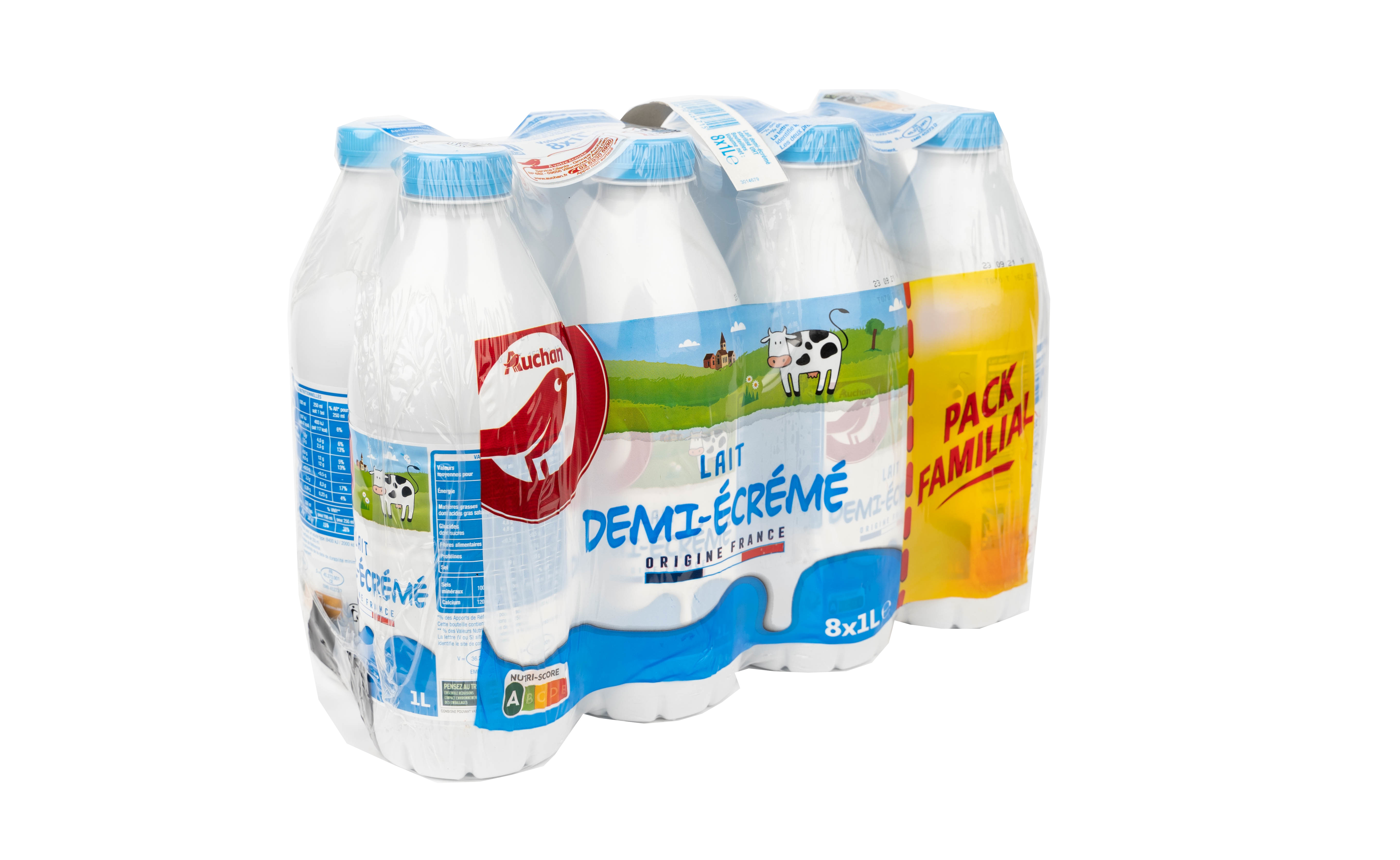 Lait demi-écrémé des campagnes Françaises en bouteilles