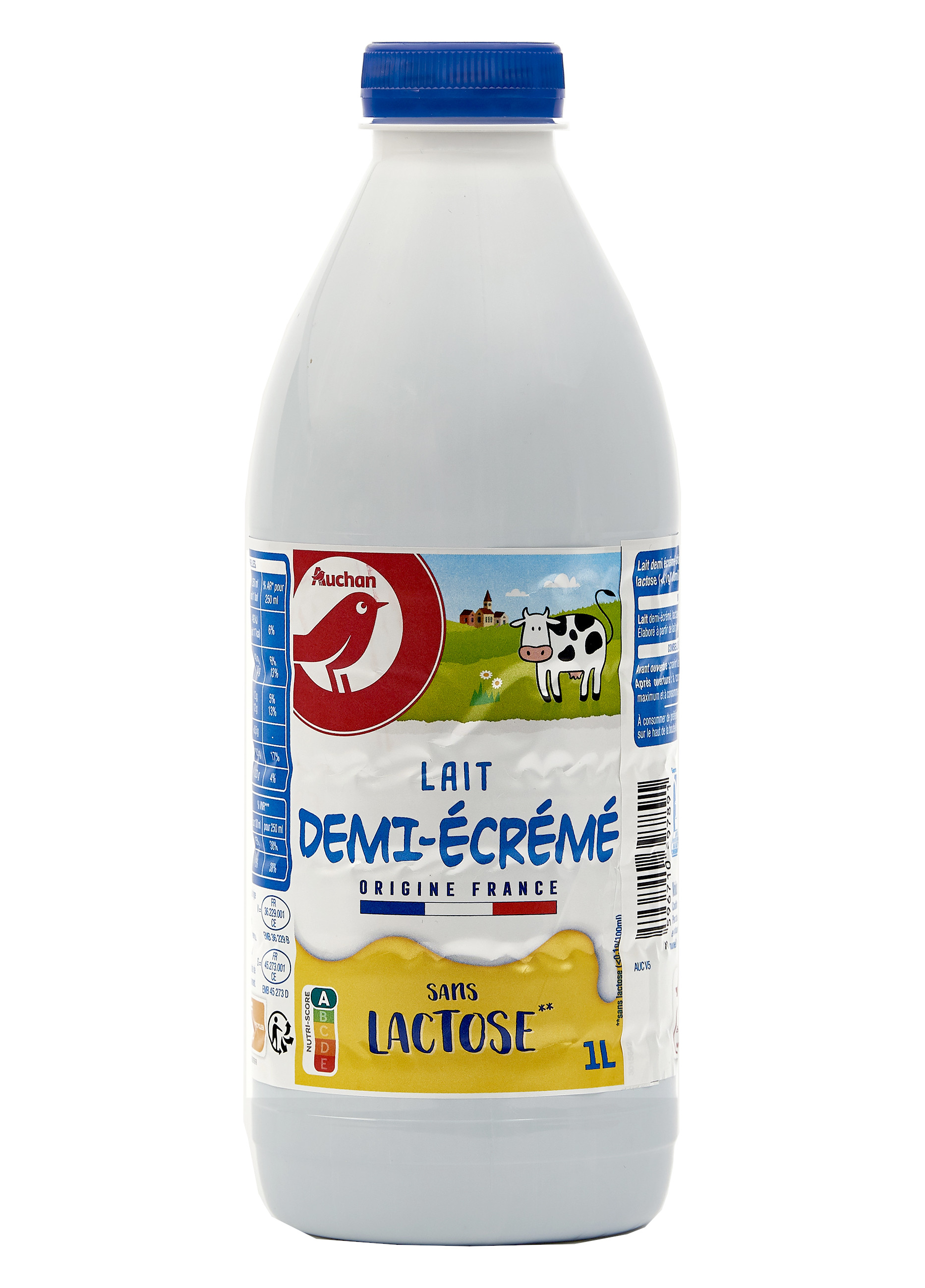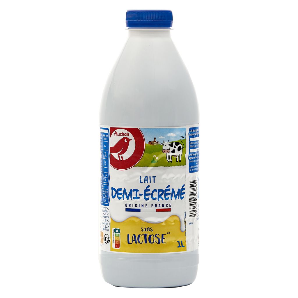 Lait demi-écrémé, lactase, vitamine DElaboré à partir de lait origine France.