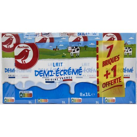 Un lait, collecté et conditionné en France, demi-écrémé, en briques 8x1L