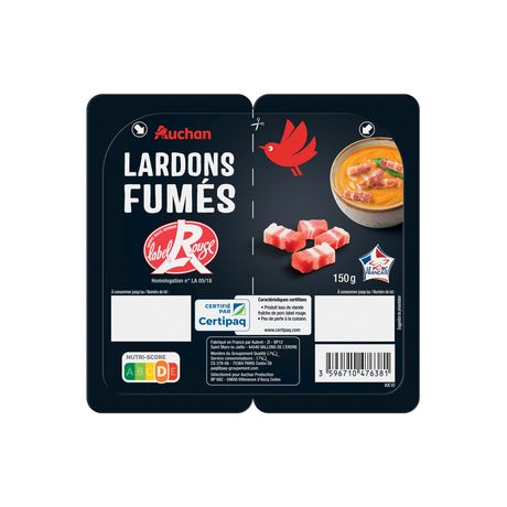 Comment sublimer vos tourtes, vos quiches et vos salades composées en utilisant les lardons Auchan Gourmet, viande LABEL ROUGE, bien évidemment Origine France. Ce label vous assure une qualité de viande supérieure, par des confitions d'élevages bien préci