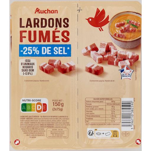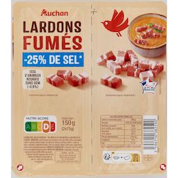 LARDONS FUMES, QUALITE SUPERIEURE - *SEL REDUIT DE 25% PAR RAPPORT A LA MOYENNE DE LA CATEGORIE