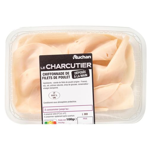 Ingrédients : Viande de filet de poulet*, eau, sel, arômes naturels, sirop de glucose de blé,