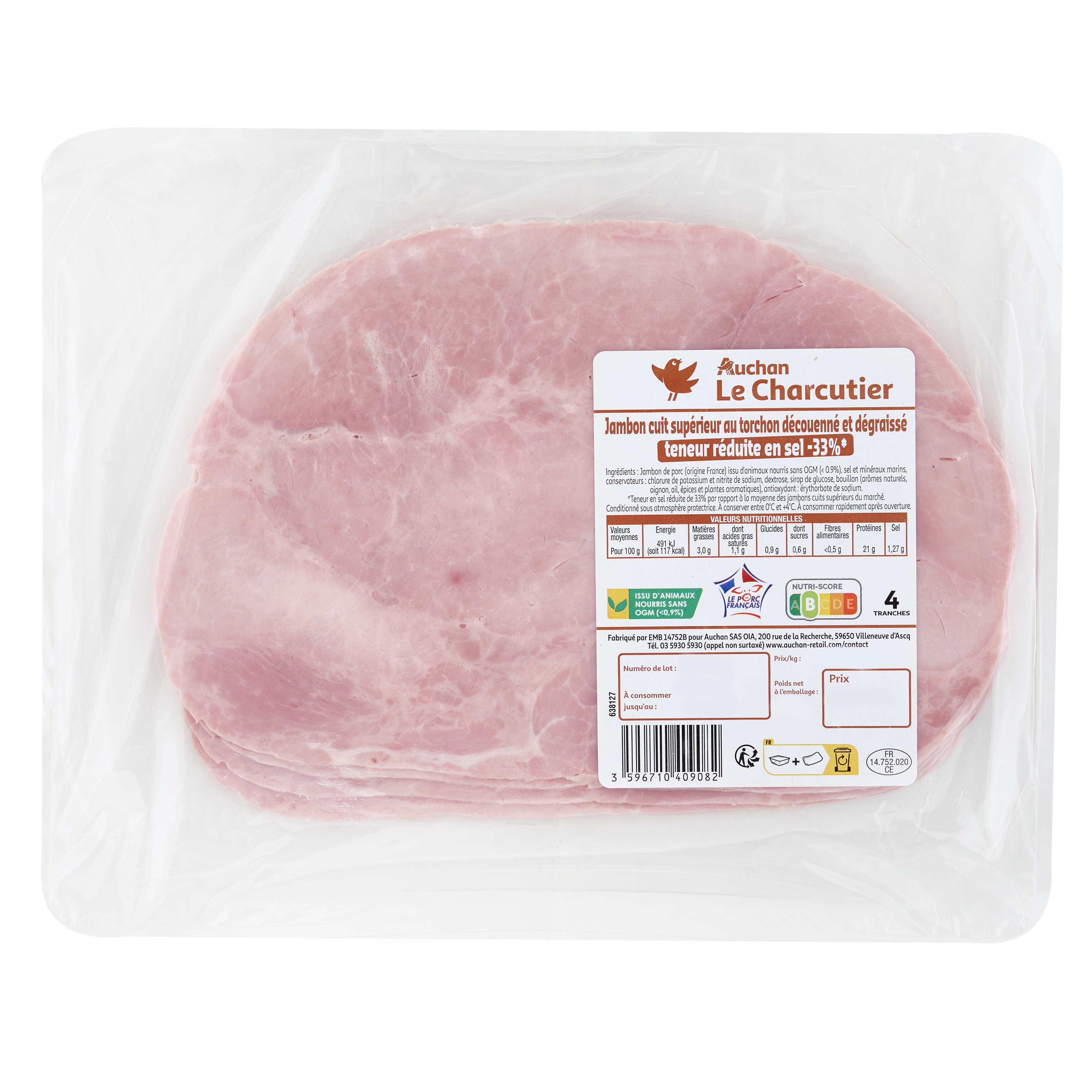 Jambon cuit supérieur découenné dégraissé cuit au torchon taux de sel réduit 4 tranches