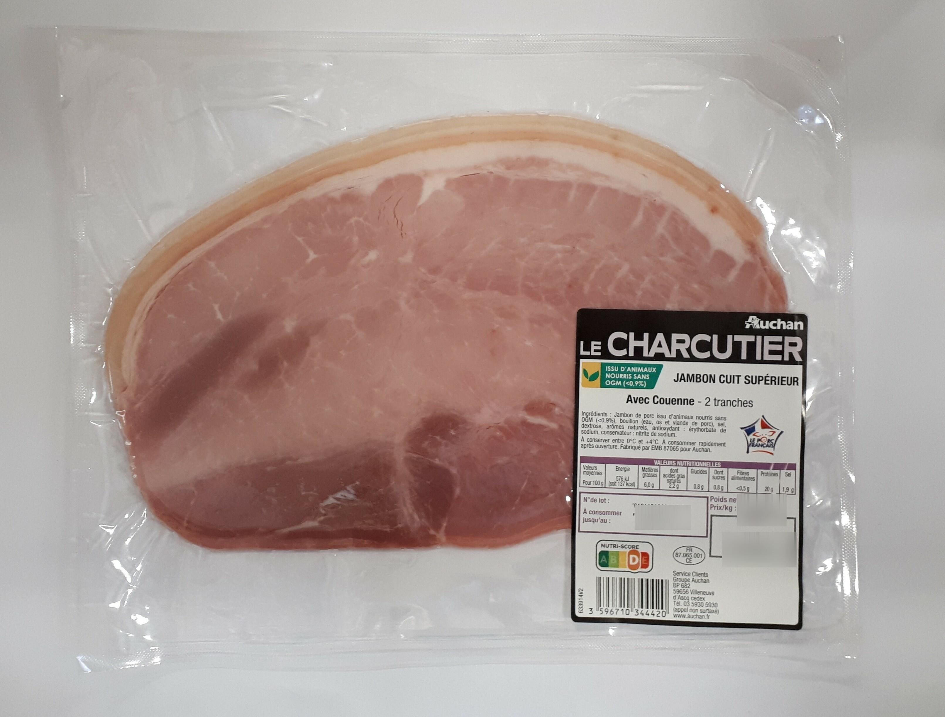 AUCHAN Jambon cuit supérieur avec couennes 2 Tr.
