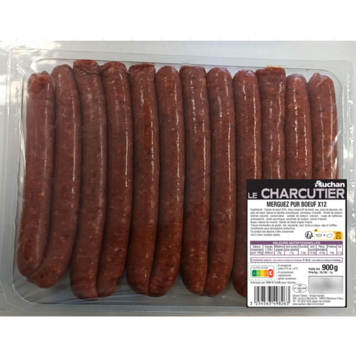 Ingrédients : Viande de bœuf* 83%; tissu conjonctif de bœuf, eau, sirop de glucose, sel, gras de bœuf, épices et plantes aromatiques, correcteur d'acidité : citrate de sodium, arômes naturels, conservateur : acétate de sodium, colorant : rouge de betterave, antioxydants : acide ascorbique, ascorbate de sodium, extrait d'épices.