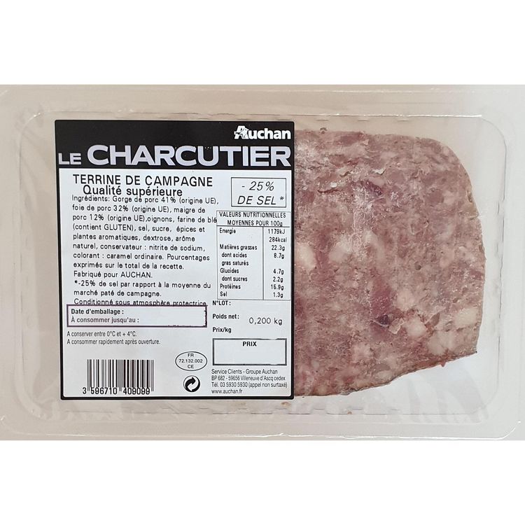 -25% de sel par rapport à la moyenne du marché Pâté de campagne.