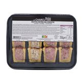 Plateau de 16 tranches de pâté en croûte au format cocktail. Afin de répondre aux envies de chacun ce plateau est composé de 4 recettes :