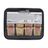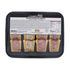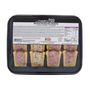 jambon et pistaches ; 2 olives ; poulet moutarde à l'ancienne ; morilles et champignons noirs. Otez le film supérieur et ce produit est prêt pour l'apéritif.