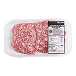 Ingrédients : Viande de porc (origine Italie), sel, vin blanc, dextrose, poivre noir, ail, antioxydant : ascorbate de sodium, conservateurs : nitrite de sodium, nitrate de potassium. 142 g de viande de porc mise en œuvre pour 100 g de produit fini.