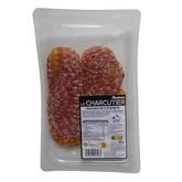Ingrédients : Viande de porc (origine : France), sel, pistaches (FRUITS A COQUE) 5%, lactose (LAIT), sel, dextrose, poivre, sucre, ail, ferments, conservateur : nitrate de potassium, antioxydant : érythorbate de sodium.