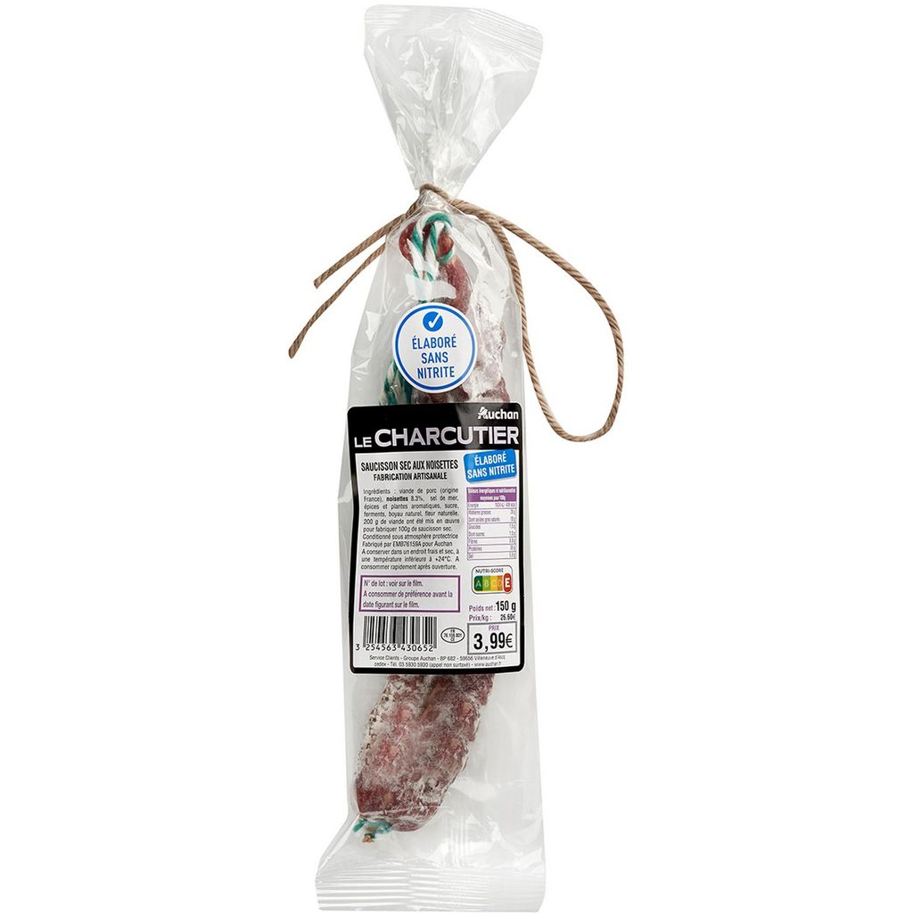 SAUCISSON SEC ELABORE SANS NITRATE ET NITRITE AUX NOISETTES