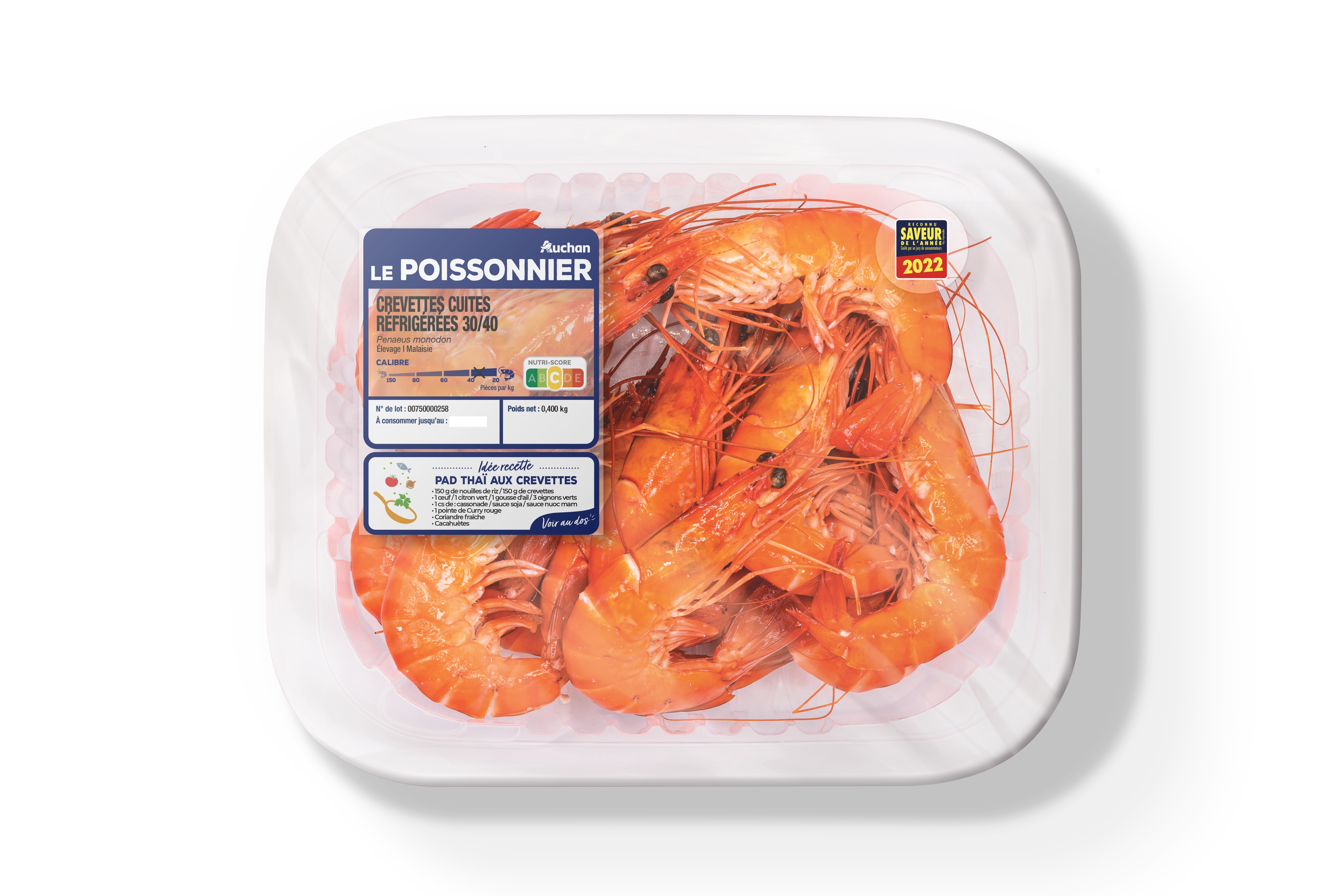 Crevettes cuites réfrigérées 30/40 origine Asie ou Afrique