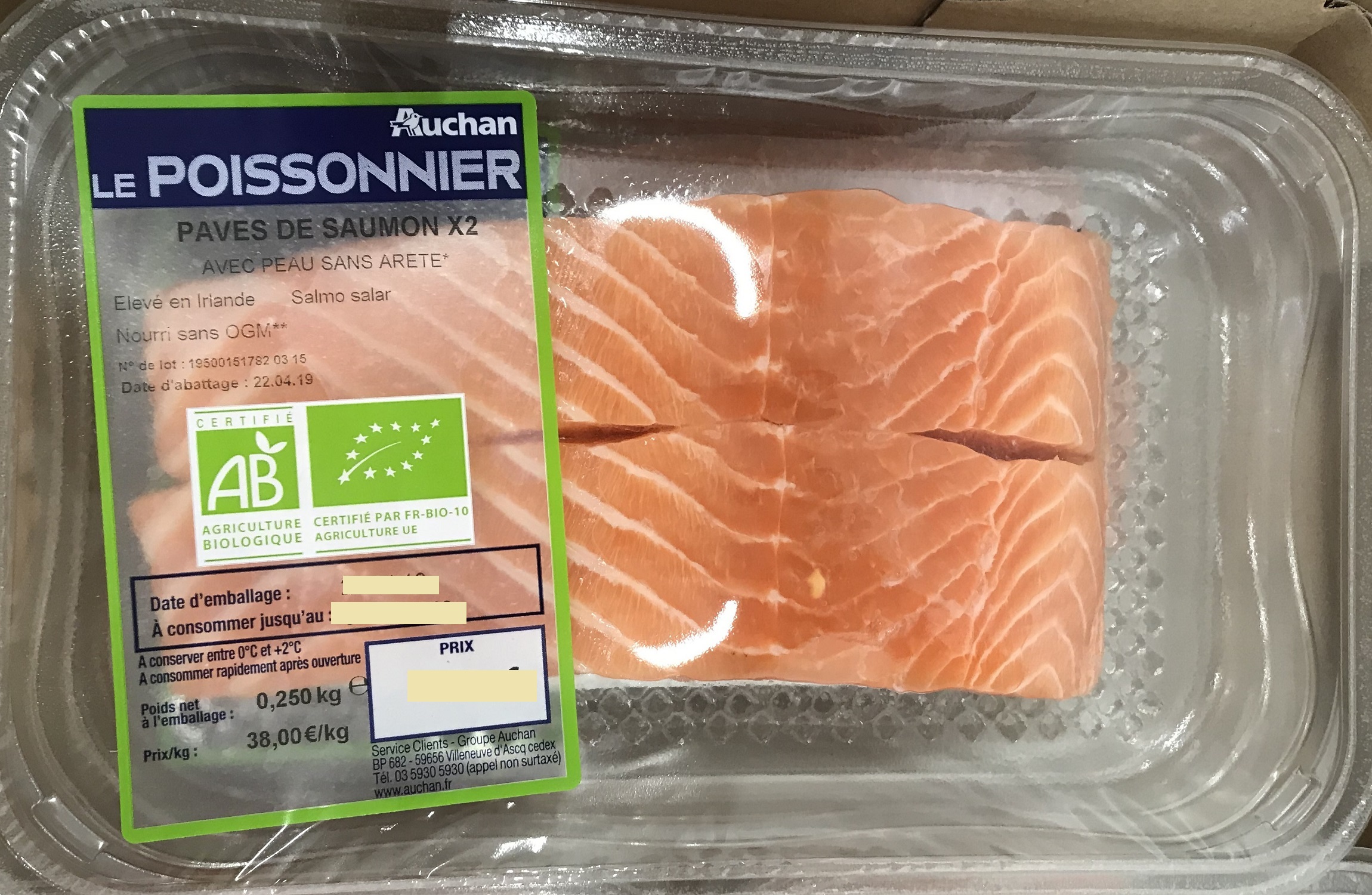 Pavé de saumon Biologique 2x125g, élevé en Irlande