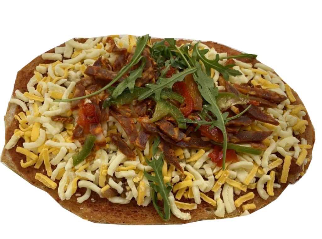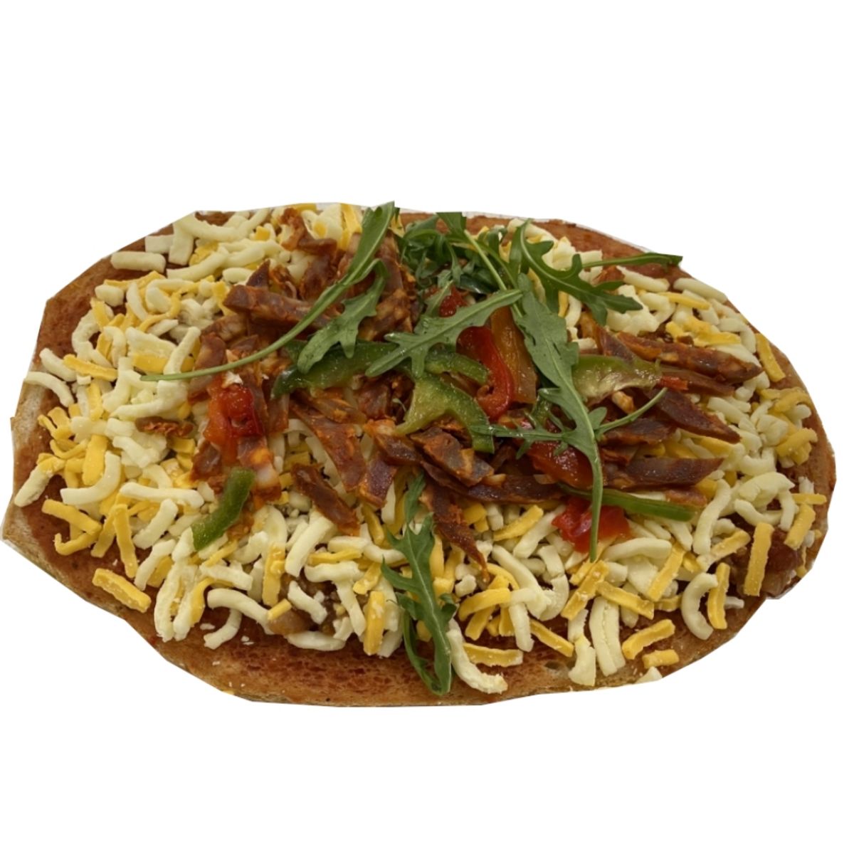 farine (BLE tendre, eau, huile d'OLIVE 1,8%, sel, levure, farine de malt (BLE) traité à l'alcool éthylique Mozzarella cheddar 70% : LAIT de vache pasteurisé, protéiné de LAIT, correcteur d'acidité : E330, ferments lactiques, préservateur : E202, antiagglomérant : amidon. Fromage 30% : LAIT de vache pasteurisé, sel, ferments lacésure, colorant E160b, E509). Sauce bolognaise (14%) pelée concassée 50% (tomate, jus de tomate, sel, a :E330, affermissant : E509), viande de bœuf haché, sauce tomate 15% (purée de tomates, sucre, sel, tournesol, basilic : thym, origan, acidifiant : E3oignon), oignon, eau, huile d'olive, sel, amidon de maïs, ail en cube, basilic, sucre, poivre), sauce tomate (tomates, sel, sucre, herbes, épices, ail, régulate : E330), chorizo (4%) (viande de porc, sel, malt paprika, LACTOSE, caseinate de sodium, protéine, ail, dextrose, conservateurs: E301, extrait de E250, E252, ferments, traitement de surface: E202, lanières, roquette