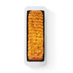 Ingrédients : INGREDIENTS : farine de BLE, ŒUF, EMMENTAL râpé, huile de colza, cube de viande de cuisse de poulet traité en salaison et rôti 12% (viande de cuisse de poulet 10,5%, eau, fécule de manioc, dextrose, sel), poivron grillé 10%, eau, oignon préfrit (oignon, huile de tournesol), poudres à lever : carbonate acide de sodium - tartrates de potassium (BLE), LAIT écrémé en poudre, sel, curry 0,3% (coriandre, curcuma, fenouil, fenugrec, cumin, ail, poivre noir, chili, sel).