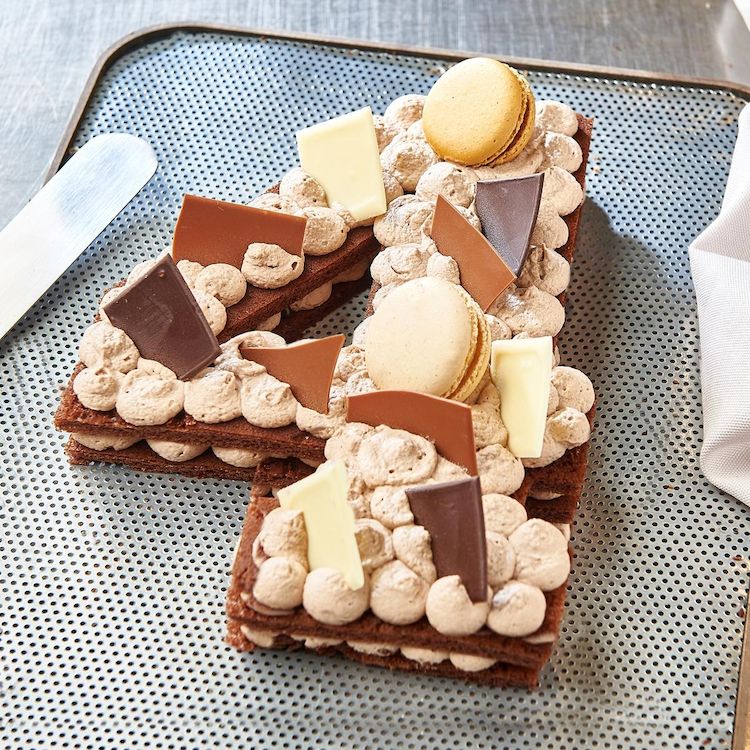 crème sucrée chocolat 55,7% (crème (LAIT) (origine : France), stabilisant : E407, chocolat mi amer (pâte de cacao, sucre, beurre de cacao, émulsifiant : E322, arôme vanille), sucre), feuille suprême cacao 31,8% (OEUFS entiers, sucre, farine de BLE, eau, blanc d'OEUF (blanc d'OEUF, épaississant : E415), poudre de cacao maigre 3%, stabilisant : E420 E422, fibres d'AVOINE, émulsifiant : E472b E477 (sirop de glucose, poudre de LAIT écrémé), poudre à lever : E450 E500 (BLE)), macaron chocolat6% (coque macaron : poudre d’AMANDES 29%, sucre glace (contient sucre, amidon de maïs et/ou fécule de pomme de terre), sucre semoule, blanc d’OEUF liquide plein air pasteurisé, cacao en poudre dégraissé 2.4%, blanc d’OEUF plein air pasteurisé en poudre, décor : bille chocolat noir (sucre, pâte de cacao, cacao maigre en poudre, émulsifiant : E322 de colza, agents d’enrobage : gomme E904, E414). garniture macaron : CREME pasteurisée, chocolat d’equateur 21% (pâte de cacao biologique d’equateur, sucre, beurre de cacao, émulsifiant : E322 de tournesol, arôme naturel de vanille), chocolat noir 18% (pâte de cacao, sucre, beurre de cacao, émulsifiant : E322 de tournesol), BEURRE), decor tablette(chocolat noir (masse de cacao, sucre, beurre de cacao, emulsifiant : lecithine de SOJA, arome naturel de vanille), chocolat blanc (sucre, beurre de cacao, LAIT entier en poudre, emulsifiant : lecithine de SOJA, arome naturel de vanille), chocolat lait (sucre, beurre de cacao, LAIT entier en poudre, masse de cacao, emulsifiant : lecithine de SOJA, arome naturel de vanille)), masse de cacao, sucre, beurre de cacao, emulsifiant : lecithine de SOJA, arome naturel de vanille, eau, sucre.