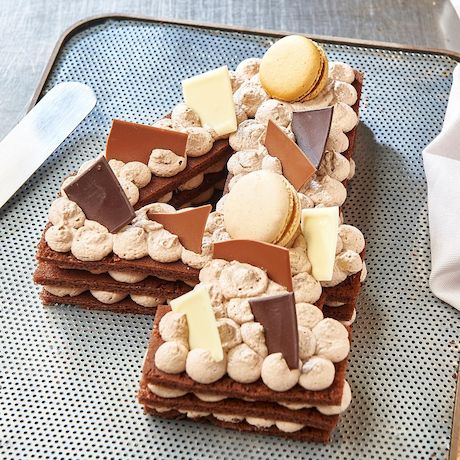 Chantilly chocolat (CREME (CREME, proteines de LAIT, stabilisant: E407), chocolat noir 9% (pate de cacao, sucre, beurre de cacao, emulsifiant: E322, arome vanille), sucre.), biscuit cacao (OEUF, sucre, farine de BLE, eau, blanc d'OEUF (epaississant: E415), poudre de cacao 3%, stabilisant: E420ii E422, fibre d'AVOINE, emulsifiant: E472b E477 (sirop de glucose, poudre de LAIT ecreme), poudre a lever: E450 E500(BLE)), macarons chocolat (sucre, AMANDES, sucre glace, blanc d’OEUF, chocolat noir 9,6% (pate de cacao, sucre, beurre de cacao, emulsifiant: lecithine de SOJA, arome naturel de vanille), chocolat au lait 6,4% (sucre, poudre de LAIT, beurre de cacao, pate de cacao, emulsifiant: lecithine de SOJA, arome naturel de vanille), LAIT, CREME, sirop de glucose, poudre de cacao, sirop de sucre inverti, colorant: E162, poudre de cacao maigre) mini tablette chocolat (chocolat noir (masse de cacao, sucre, beurre de cacao, emulsifiant: lecithine de SOJA, arome naturel de vanille), chocolat blanc (sucre, beurre de cacao, LAIT entier en poudre, emulsifiant: lecithine de SOJA, arome naturel de vanille), chocolat lait (sucre, beurre de cacao, LAIT entier en poudre, masse de cacao, emulsifiant: lecithine de SOJA, arome naturel de vanille)sirop (sucre, eau), carre chocolat noir (chocolat noir (masse de cacao, sucre, beurre de cacao, emulsifiant: lecithine de SOJA, arome naturel de vanille)